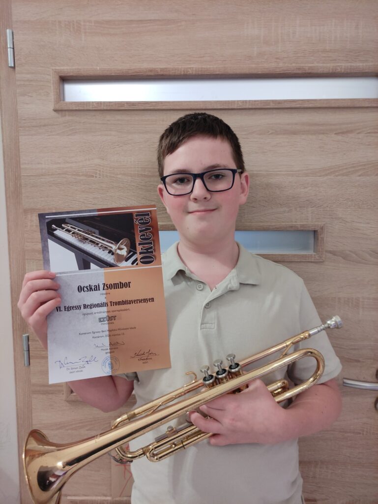 Ismét büszkék lehetünk iskolánk egyik tehetségére! 2026. március 13-án rendezték meg a VI. Egressy Regionális Trombitaversenyt a komáromi Egressy Béni Alapfokú Művészeti Iskolában, ahol Ocskai Zsombor 6.a osztályos tanulónk kiemelkedő teljesítményével EZÜST minősítést szerzett.
